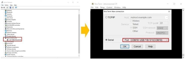 "장치관리자"를 열어 해당 포트가 몇번포트로 열려있는 지 확인한다. 이후 해당 COM포트로 Teraterm을 통해 라즈베이파이 피코와 연결한다.