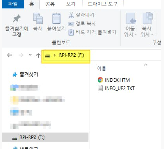 uf2파일을 RPi-RP2에 복사하면 자동으로 인식해 CircuitPython을 사용