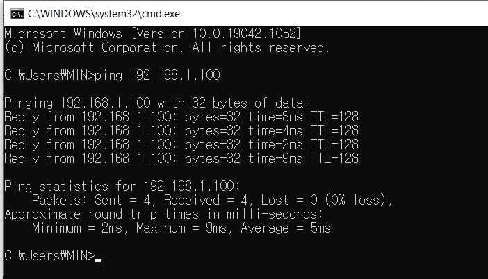 IP 설정 코드를 PC와 통신 되는 환경에 맞게 수정
