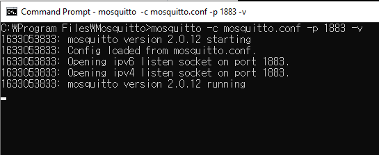 C:\Program File\Mosquitto> mosquitto -c mosquitto.conf -p 1883 -v