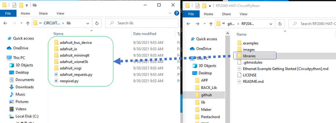 1. WIZnet github에서 라이브러리 내부에 있는 파일을 가져와 피코내부에 있는 lib폴더에 그대로 복사한다.