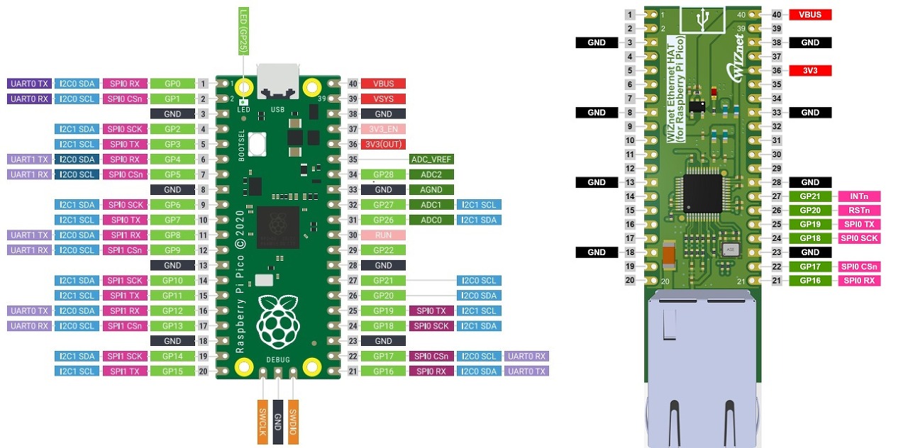 2. Raspberry Pico와 WIZnet RP2040 HAT 결합하기.